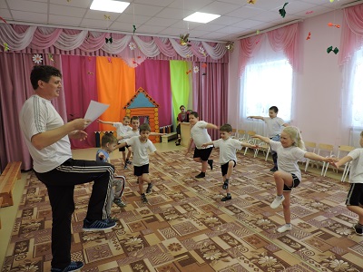 Совместно с детьми средней группы и родителями инструктор по физической культуре Мосеевский Евгений Петрович провел мастер-класс «Спорт-это здоровье!».