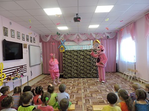 28 февраля театральный коллектив «Ангажемент» представил вниманию наших ребят лесной ЭКО-мюзикл «Суперзаяц». Ребята с удовольствием смотрели представление, переживали за главного героя зайца, помогали ему не попасть в лапы коварного волка и хитрой лисы. Выступление закончилось бурными и продолжительными аплодисментами маленьких зрителей.