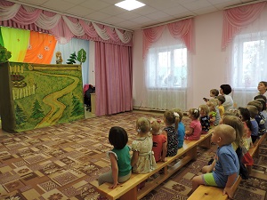 15 марта на базе нашего ДОУ состоялась кукольная театрализация для детей «Кто главнее всех на свете». Интересный сюжет завлек детей с самого начала. Вместе с главной героиней они искали ответ на вопрос: кто главнее всех на свете? Представление для маленьких зрителей закончилось исполнением веселого танца для мам.