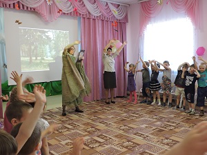 20 апреля состоялась театрализация кукольного представления для детей нашего ДОУ «Путешествие на луну». Интересный сюжет, яркие декорации заворожили внимание детей. Маленькие зрители не только смотрели сюжет, но и сами приняли активное участие в веселом представлении. Благодаря дружной помощи зрителей герои оказались на луне.