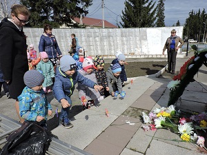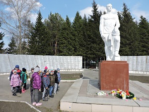 Накануне празднования Дня победы педагоги нашего детского сада вместе с детьми старшей, средней и 2-й младшей групп провели экскурсию к памятнику погибшим воинам-землякам.