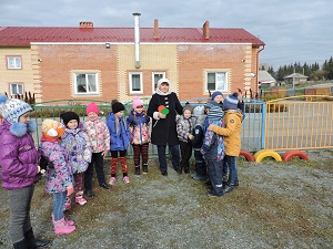 4 мая в ДОУ прошло развлечение «Жалобная книга природы» подготовленное воспитателем Мансуровой Д.К. Главная героиня «Матушка природа» рассказала детям о загрязнении окружающей среды, и они совместно учились как правильно себя вести, чтобы не навредить природе. За помощь хозяйка подарила помощникам медали «Юные защитники природы».