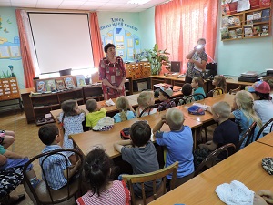 в гости к ребятам пришли сотрудники детской центральной библиотеки. Познакомили ребят с творчеством А. Л. Барто, С. Михалкова, С.Я Маршака, представили выставку книг, прочитали стихи и посмотрели интересный мультфильм.