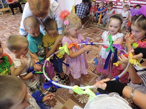6 октября в нашем детском саду состоялось шоу гигантских мыльных пузырей. Дети были в восторге. Представление получилось интригующим и волшебным.