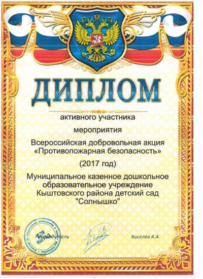 Поздравляем педагогов и воспитанников нашего детского сада за активное участие во Всероссийской акции «Противопожарная безопасность».