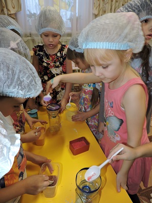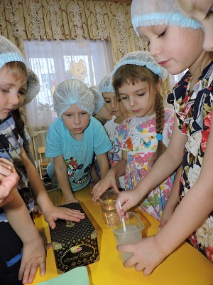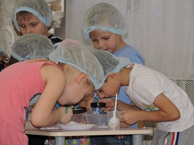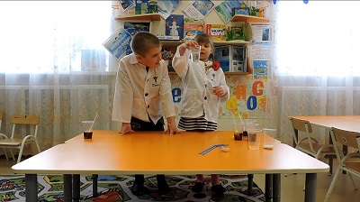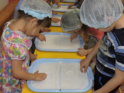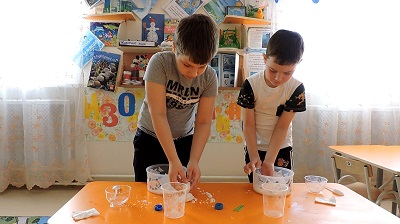 Дети отправились в лабораторию, чтобы исследовать соль и дать ответы на вопросы Снежка об особенностях и свойствах соли. В роли ученых ребята исследовали соль, рисовали солью и делали удивительные рисунки с помощью цветной соли. Вернувшись из лаборатории, ребята рассказали Снежку о свойствах соли, ответив на все его вопросы.