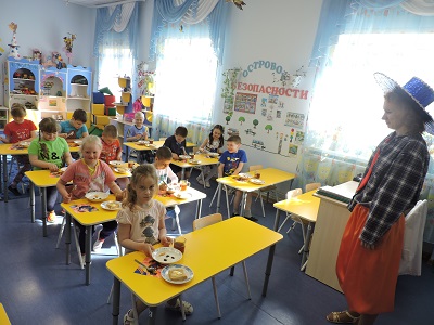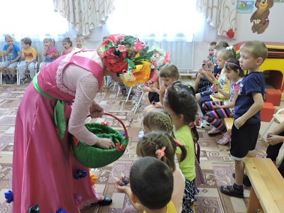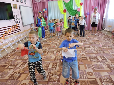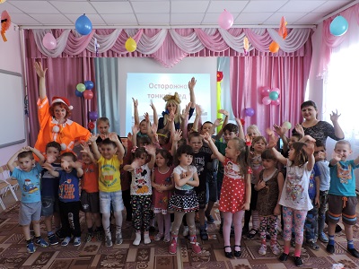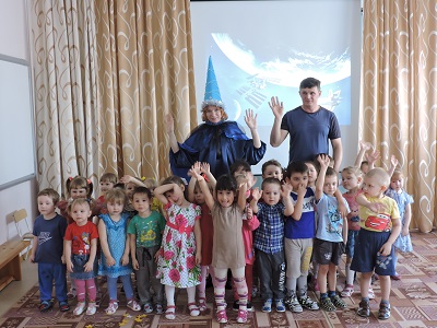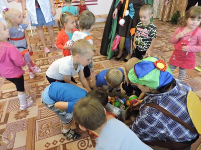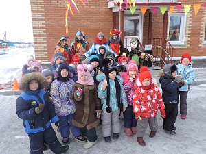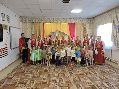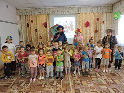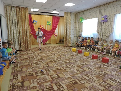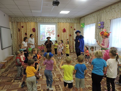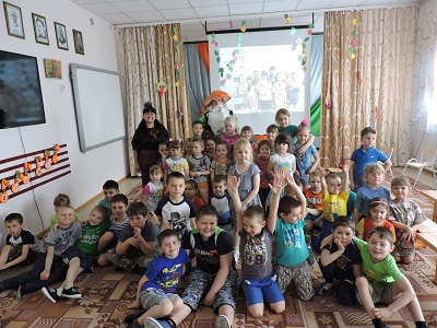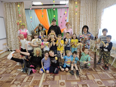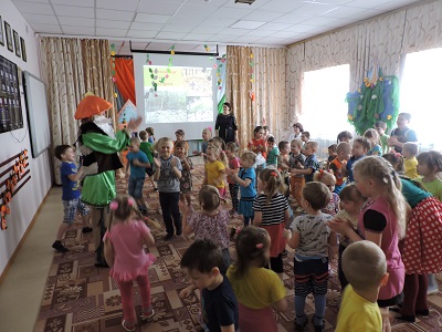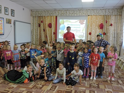 В этот день мы вместе с нашими воспитанниками старшей и подготовительной групп отправились в Дом культуры, где детей ждали веселые конкурсы, забавы. Ребята с удовольствием участвовали в конкурсах и эстафетах, отгадывали загадки. Этому способствовала веселая и дружная атмосфера. На прощанье добрая хозяюшка Галина Владимировна угостила ребят вкусными сладостями.