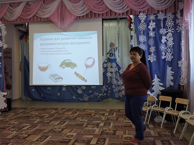 18 декабря Вильданова Н.Р. учитель-логопед представила вниманию коллег открытый показ НОД по речевому развитию « Звук Л, автоматизация звука в словах, слогах и предложениях». Образовательная деятельность проходила индивидуально с ребенком. На протяжении всего занятия прослеживалась интеграция образовательных областей, менялись виды деятельности. Ребенок с удовольствием выполнял задания, помогая при этом гостье лягушке Клаве. В подарок Настя получила волшебный цветок, с помощью которого она научит своих друзей читать слоги.