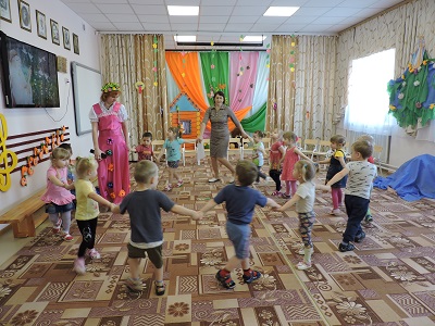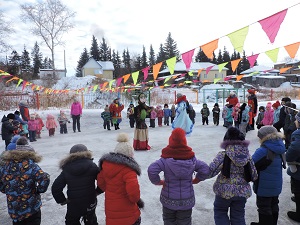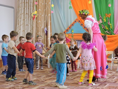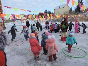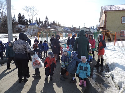 Солнышко выглядывало из-за туч, и уже совсем по- весеннему пригревало гостей праздника. Ребята с румяными щечками, кружились в хороводе, завлекая в весёлую пляску весь детский сад, а затем играли в веселые русские народные игры.