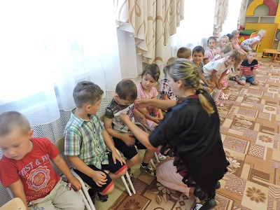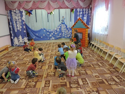 31 января музыкальный руководитель Долгих Алена Александровна представила вниманию коллег открытый показ ННОД «Музыкальный теремок». Педагогу в увлекательной и игровой форме удалось увлечь воспитанников первой младшей группы в путешествие к музыкальному теремку. Дети с интересом встречали гостей и выполняли их музыкальные задания. В конце занятия был подведен итог, а ребята на паровозике с замечательным настроением отправились в группу.