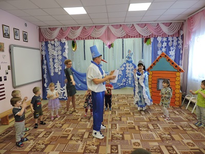 В старшей группе «Волшебная снежинка» вместе с ребятами весело и задорно встречали Деда Мороза и Снегурочку на празднике,