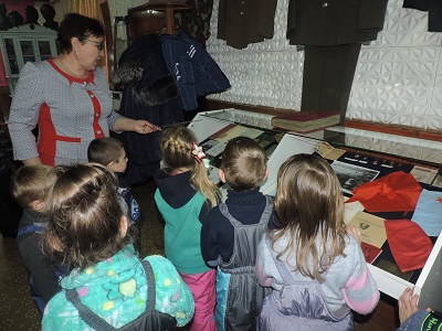 В рамках месячника патриотической направленности воспитанники старшей и подготовительной к школе групп побывали на экскурсии в краеведческом музее нашего села.