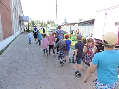 С детьми заранее была проведена беседа: «Как нужно вести себя в случае возникновения пожара или задымленности здания».