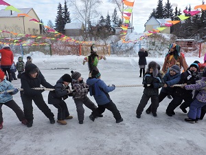 Самым веселым моментом стало перетягивание каната детьми вместе с веселыми героями праздника.