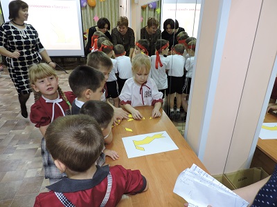 На одной из станций ребята встретили Красную Шапочку, которая растеряла все свои картинки, ребята рады были ей помочь. В ходе мероприятия воспитанники вспомнили и закрепили все полученные знания в течение года, подарили Королеве Звукограда совместно выполненный коллаж. Все участники были награждены медалями.