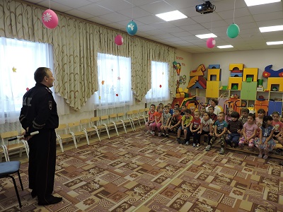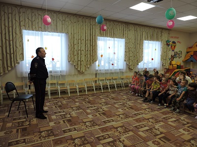 В старшей и подготовительной группах прошло мероприятие под названием «Помни и задумайся» с участием сотрудника ДПС Казакова В.С. Вадим Сергеевич провел беседу с детьми о безопасности на дороге, ознакомил наших воспитанников со статическими показателями дорожно-транспортных происшествий, произошедших в 2018 году в нашем муниципальном образовании. Дети задавали вопросы, рассказывали свои истории из жизни о нарушении правил на дороге.