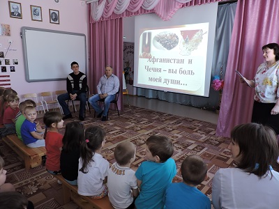 Они рассказали детям о суровых испытаниях, выпавших на их долю. Дети задавали вопросы на которые получили исчерпывающие ответы. В конце встречи воспитанники подарили гостям подарки-открытки сделанные своими руками. Такие мероприятия, проведённые с детьми, закладывают в их душах зёрнышки патриотизма, чувства долга перед Родиной.