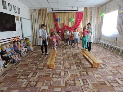 С детьми младшей и средней групп праздник состоялся в спортивном зале.