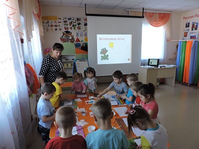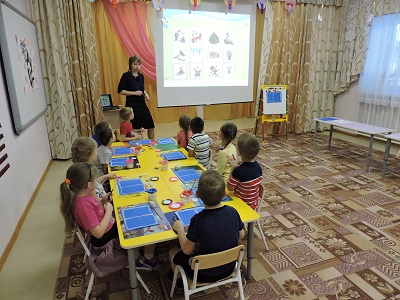 27 апреля у воспитанников старшей и подготовительных групп, прошло логопедическое развлечение «Путешествие в Звукоград», целью которого было совершенствование фонетико-фонематической стороны речи. Ребята отправились в веселое путешествие на импровизированном паровозе под веселую музыку. На первой же станции ребят встретила со своими занимательными упражнениями Королева Звукограда.