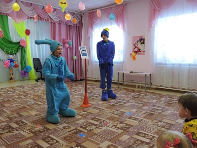 13 марта компания «Театро» представила вниманию наших воспитанников театрализованное представление «Правила дорожного движения со смешариками». Веселые и любопытные герои мультфильма «Смешарики» вместе с детьми повторили правила дорожного движения, а так же узнали много нового и полезного о правилах дорожного движения. В подарок от гостей ребята получили светоотражающие браслеты.