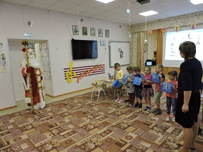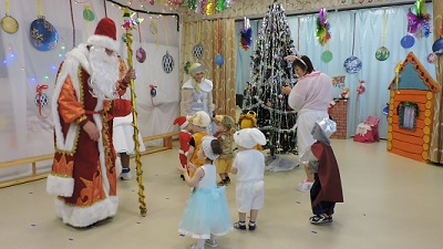 С 24 по 28 декабря в музыкальном зале детского сада прошли новогодние утренники с детьми всех возрастных групп. Праздничные мероприятия проходили, прежде всего, с целью создать атмосферу праздничного настроения, доставить детям радость.