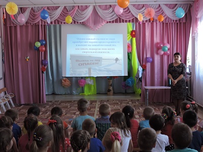 Вниманию воспитанников была представлена презентация «Безопасность у воды весной», которую подготовила и провела учитель-логопед Вильданова Н.Р.