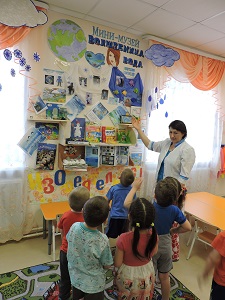 В смотре-конкурсе приняли участие воспитатели и специалисты нашего детского сада. Сколько фантазии и творчества они проявили! В каждой группе воспитатели, родители и дети создали свой неповторимый музей. Педагоги провели экскурсии по своему мини-музею описав содержание, примерные варианты использования мини-музея в образовательном процессе, возрастную направленность. Жюри предстояла нелегкая работа, ведь все музеи очень интересные и познавательные.